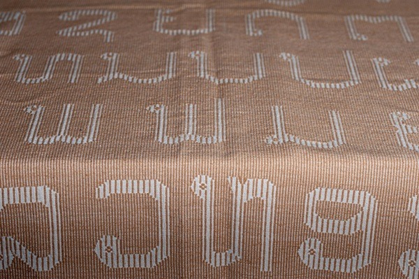 The alphabet is woven adopting traditional ‘suspended’ double warp techniques of ancient Lanka and Laos